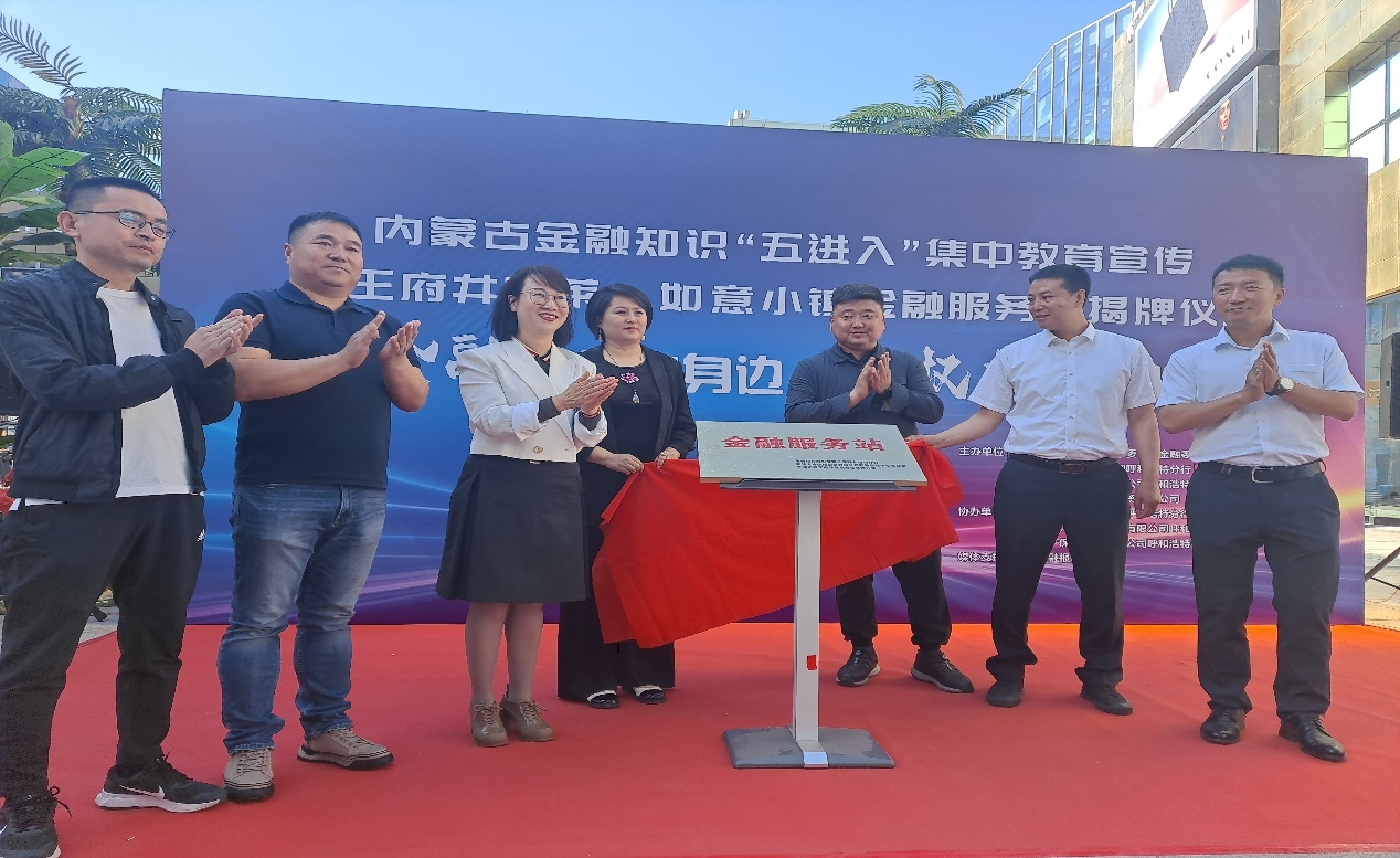 为贯彻党中央“严厉打击非法金融活动”的决策部署,全面落实全国2024年防范处置非法集资部际联席会议精神和《内蒙古自治区打击非法集资专项行动实施方案》,通过防范非法集资“七进”集中教育宣传,将金融知识普及到各个领域,提高群众非法集资防范意识,结合金融机构“五进入”集中教育宣传,5月26日下午,呼和浩特市委金融办联合呼和浩特王府井奥莱商贸有限公司、蒙商银行股份有限公司呼和浩特分行、新华人寿保险股份有限公司呼和浩特中心支公司等单位在王府井奥莱如意小镇组织开展防范非法集资宣传“进商圈”活动,并举行王府井奥莱如意小镇金融服务站揭牌仪式。