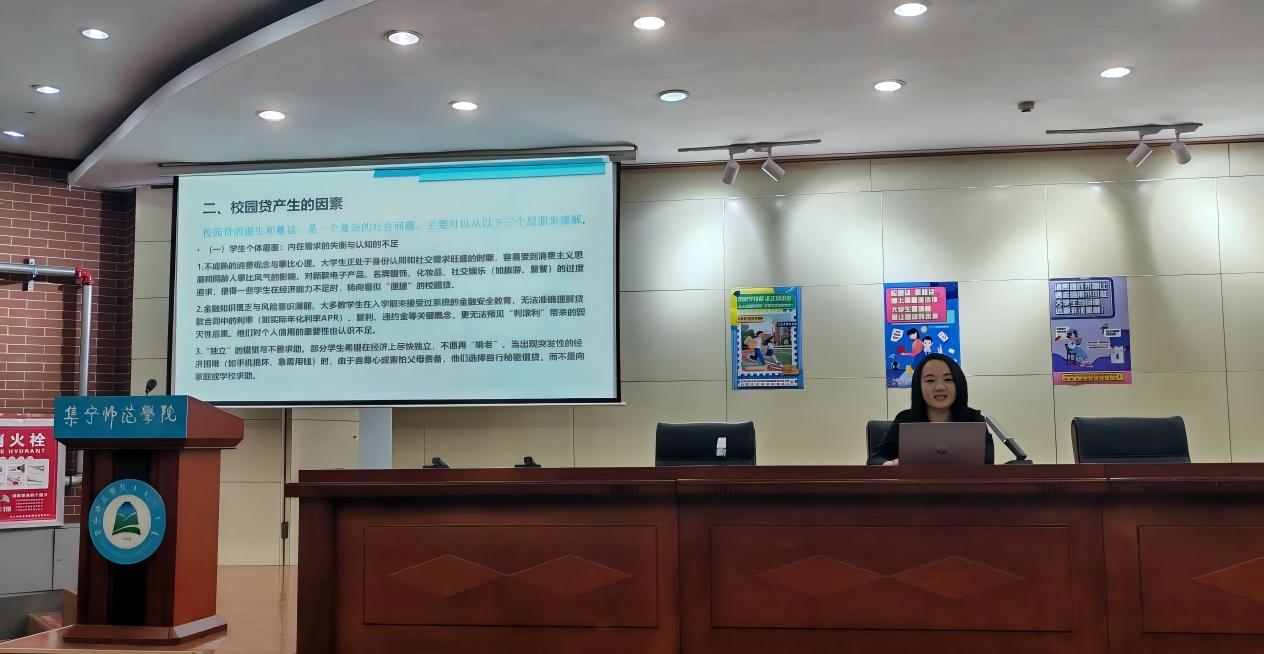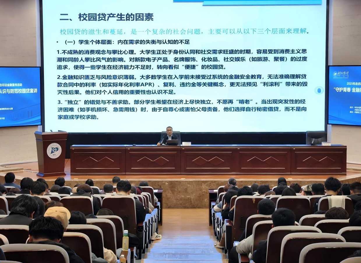 本次系列宣讲活动聚焦当前在校大学生面临的金融知识匮乏,风险防范意识不强等问题,围绕“校园贷”的识别与防范、产生因素、核心危害以及应对措施等方面开展了系统深入的讲解。为使同学们对校园贷有更直观、更深刻的认识,宣讲活动观看了常见骗局类型的宣传片,帮助同学们擦亮眼睛,识破陷阱。