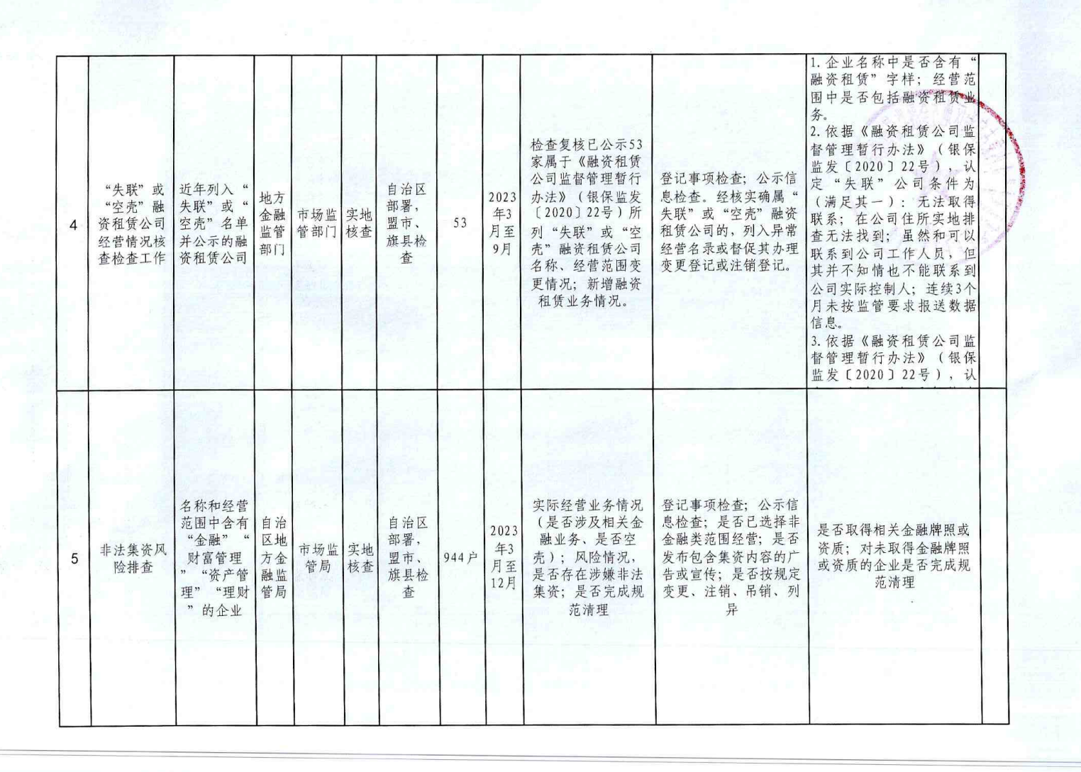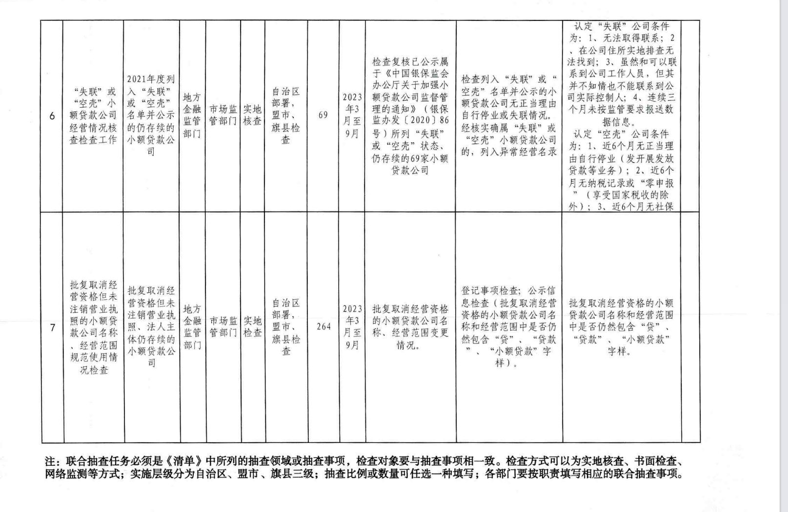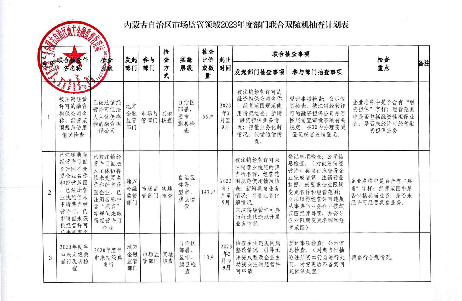 内蒙古自治区市场监管领域2023年度部门联合双随机抽查计划表