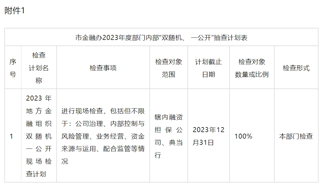 开展对辖内已取得经营许可证的融资担保公司、典当行现场检查(详见附件1)。